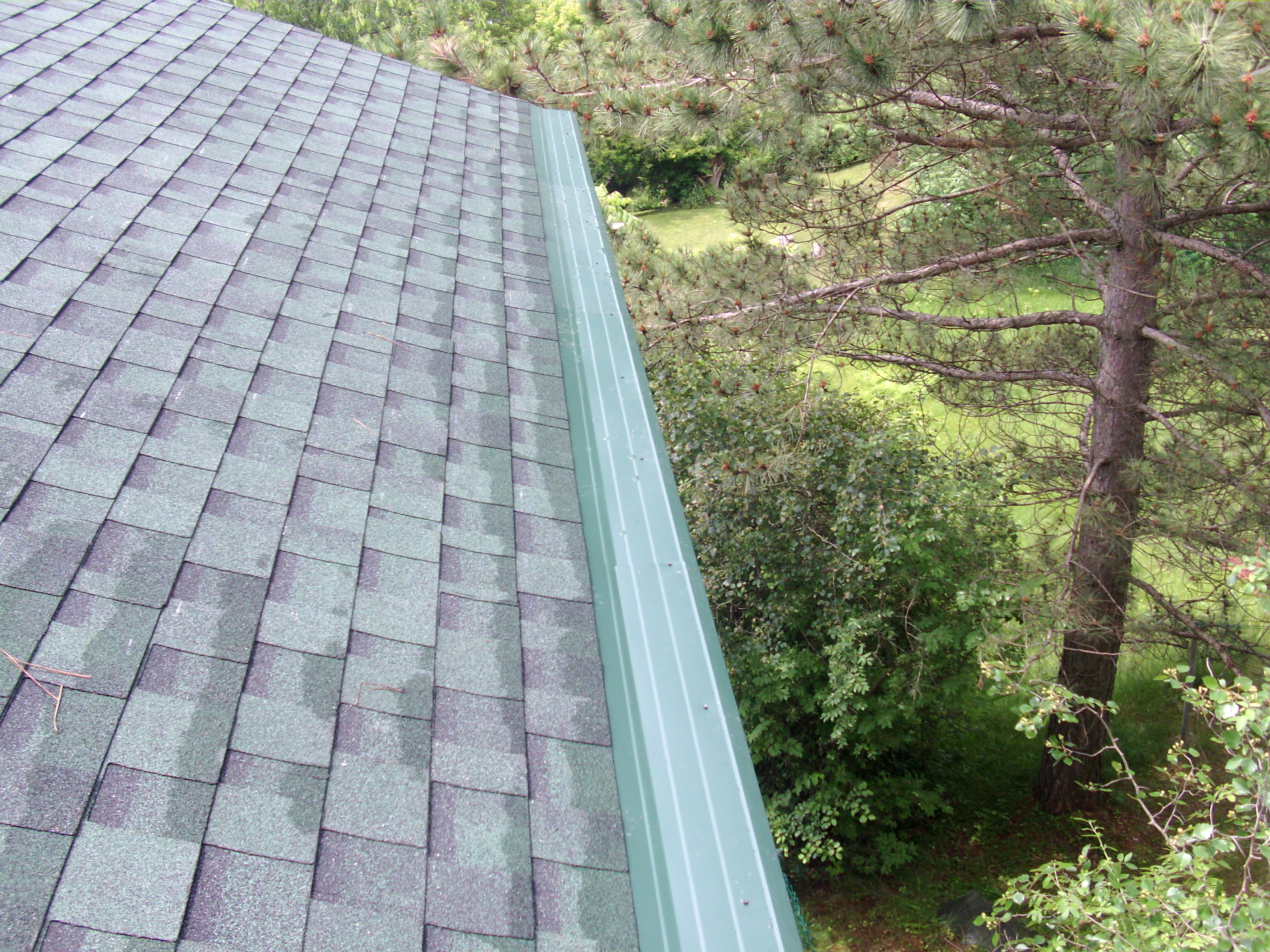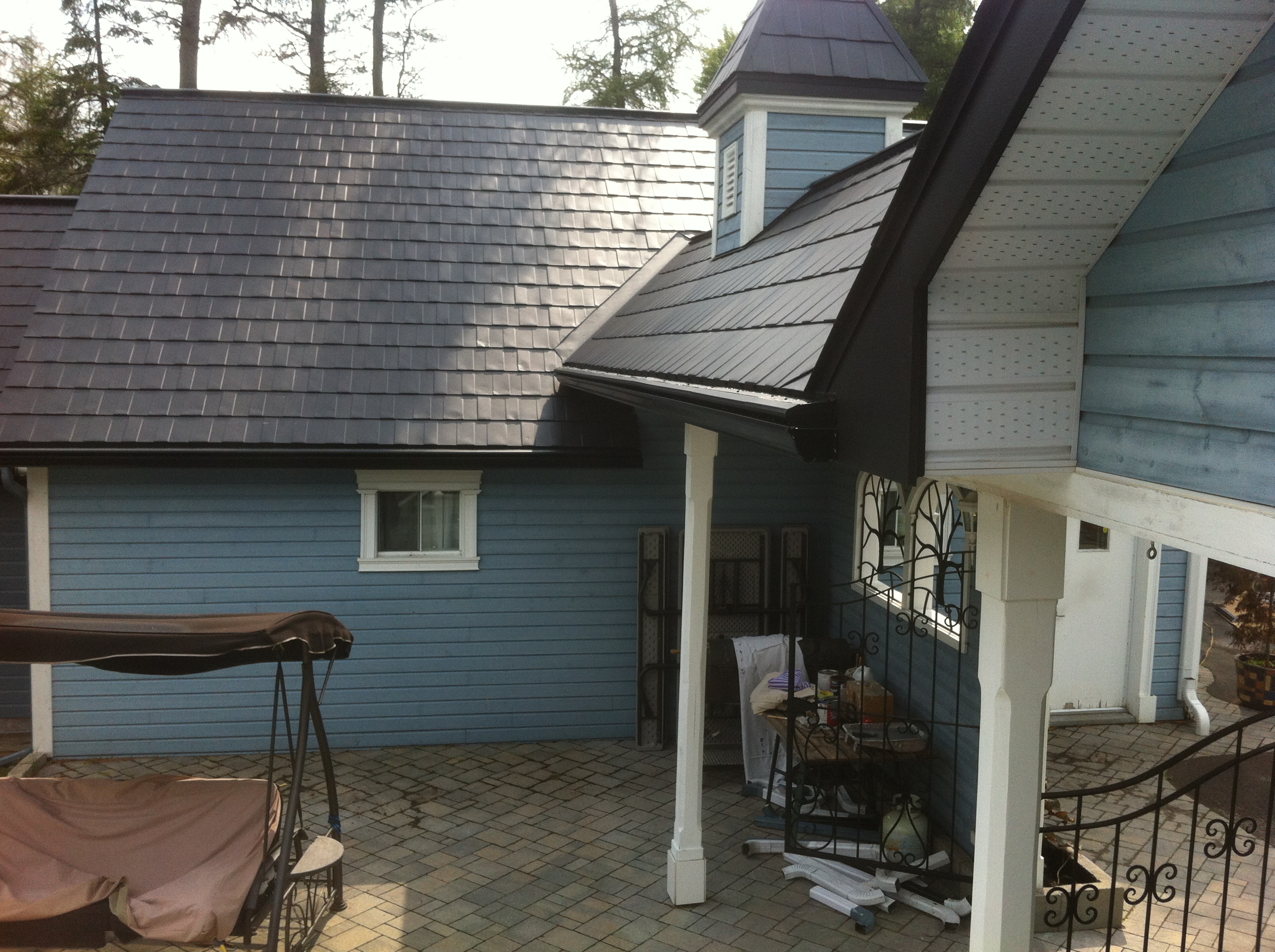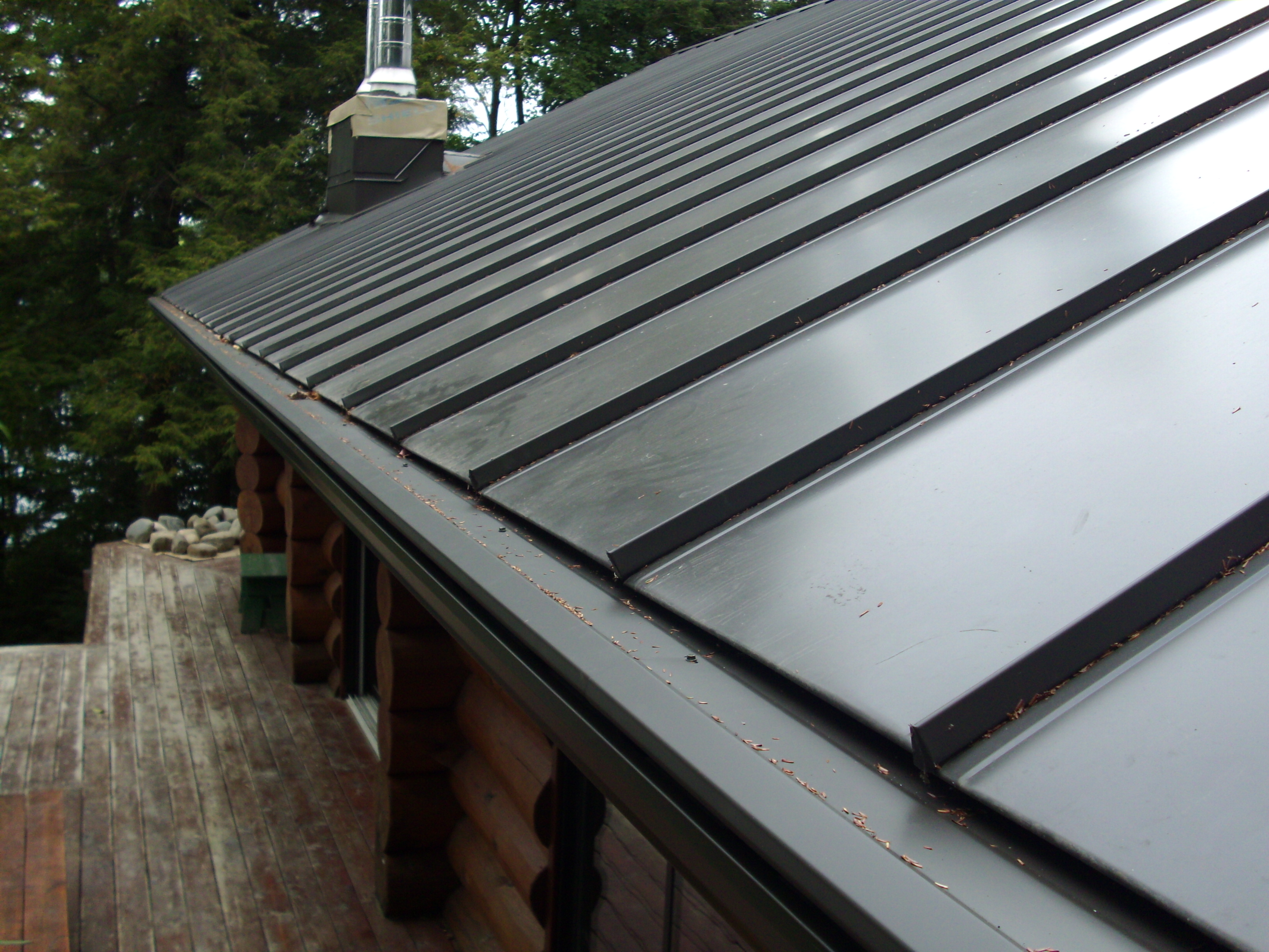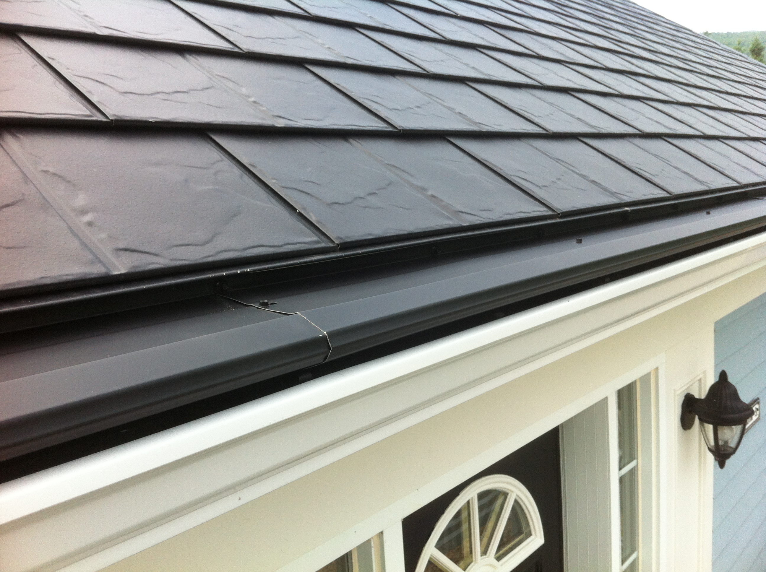 Nous avons un toi ''permanent'' avec une pente très abrupte. La neige descend assez rapidement. Tout ceci se passe maintenant sans rien arracher. Aussi, pendant un fort orage, la pluie tombe vraiment dans la gouttière.